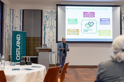 Die Vertreterversammlung 2024 der OSTLAND hat wichtige Signale gesendet. Dass alle wichtigen Entscheidungen einstimmig gefällt worden sind, dokumentiert Einigkeit und Zuversicht. „Danke für das Vertrauen und das gute Miteinander“, sagte OSTLAND-Vorstand Andreas Wahl. Die Zusammenkunft am 13. Juni sorgte für gute Gespräche. Der Blick zurück auf das Geschäftsjahr 2023 wurde verknüpft mit einem Einblick in die Strategie und Zukunft unserer Genossenschaft. Den positiven Rückmeldungen der Vertreterinnen und Vertretern war zu entnehmen: Die OSTLAND, die 2025 ihr 75-jährige Bestehen feiert, bleibt auf einem guten Weg.
