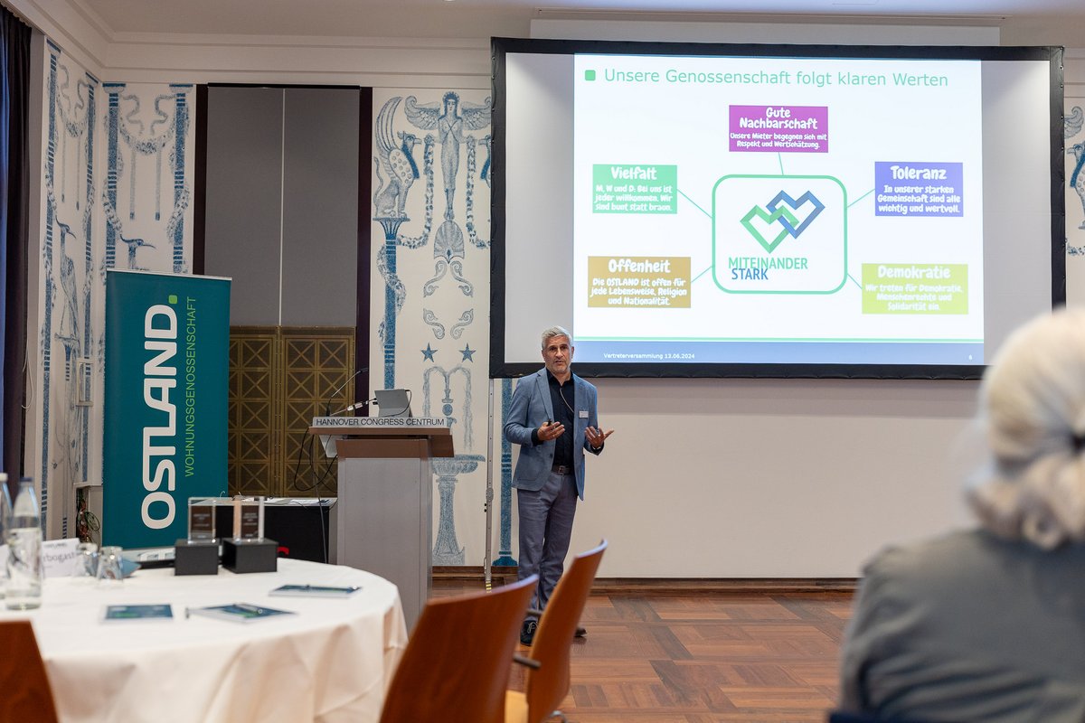 Die Erfolgsgeschichte der OSTLAND basiert auf Kontinuität und Zuverlässigkeit der handelnden Personen. Mit Isabell Klose, Claus Gedig und Oliver Meißner sind drei Mitglieder des Aufsichtsrates wiedergewählt worden. Das Gremium, ergänzt durch Susanne Petersen und Funda Schuster, wird von Michael Bosse-Arbogast angeführt. Er hat die Vertreterversammlung im Hannover Congress Centrum moderiert. Vorstand und Aufsichtsrat gaben Einblicke in die wichtigsten Projekte und Zahlen der OSTLAND. Dazu gehört die beschlossene Dividende in Höhe von 3 Prozent auf die Geschäftsanteile als eine von vielen Konstanten. Und dazu gehören 4,87 Millionen Euro, die allein in 2023 zum Wohl der Mieter in unsere Wohnungen und Häuser investiert worden sind.
